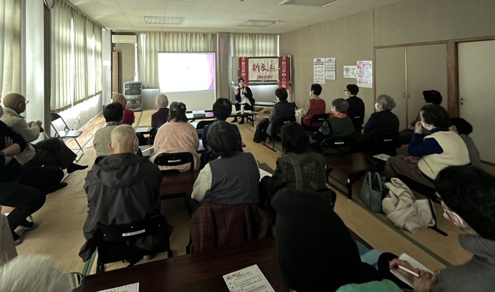 2月15日(日)、新婦人の会釜石支部の新春のつどいにおいて、上中島店の大釋里佳子薬局長が「4月からどう変わる?私たちの薬と医療費」と題して講演を行いました。当日は25名の皆さまにご参加いただき、約1時間にわたり、医療費に関する最新の動向を中心に、残薬の問題やOTC類似薬品、ジェネリック医薬品などについて分かりやすく説明いたしました。講演後には多くのご質問をいただき、医療費やお薬に対する関心の高さがうかがえました。参加された新婦人の会会員の方からは、「医療費について、薬剤師さんの説明を聞いて理解が深まりました。また、自分の飲んでいる薬について改めて考える良い機会になりました」とのご感想をいただきました。また、「いつも上中島店を利用しています。親身になって話を聞いていただけるので安心しています」といった温かいお言葉も頂戴し、大変励みになりました。これからも地域の皆さまに正しい情報を分かりやすく発信し、安心してご相談いただける“かかりつけ薬局”として努めてまいります。
