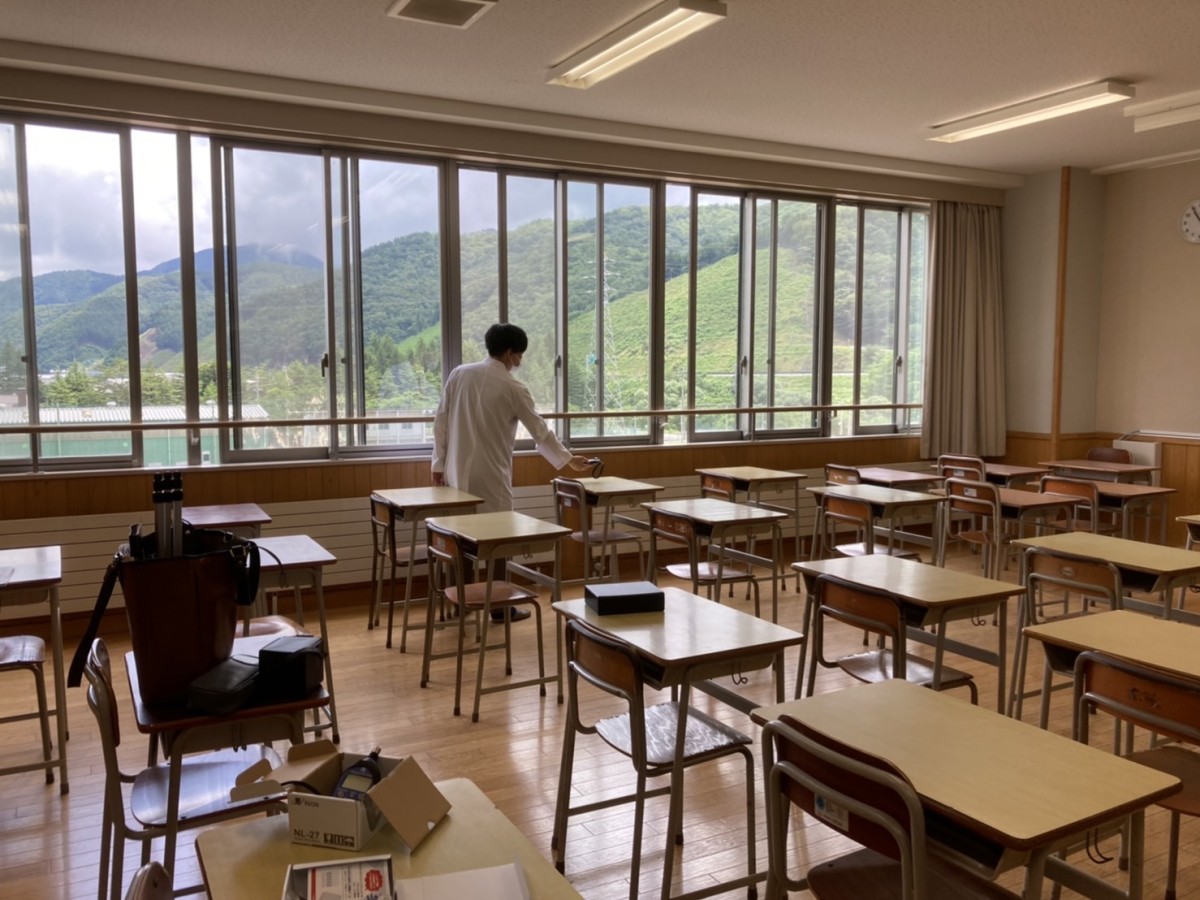 7月6日(水)雨が降ったりやんだり蒸し暑い一日となりました!皆様、体調管理には十分お気をつけください。本日、中田が実務実習中の薬学生を連れて、釜石高校の学校環境衛生検査に行って参りました。夏の暑い時期はエアコン使用時の換気が不十分になりがちです。再び新型コロナウィルスの感染が増えつつあり、換気の必要性と熱中症にならないような適正室温の管理が大切です。また、授業ではプールも始まっておりプール検査も行いました。薬学生の感想「事前学習でDVDを見て検査に臨んだが、実際に検査を行い、生徒たちが一日の大半を学び過ごす学校環境を整えることが薬剤師の役割であることを実感した。暑い中、元気いっぱいの生徒の姿を見て元気をもらった」。学校薬剤師を長年務める中田の感想「子供たちに元気な声で挨拶されることがとてもうれしい。学校と同じように、子供たちが健全に過ごすことができる家庭環境を整えることも提案していきたい」。
