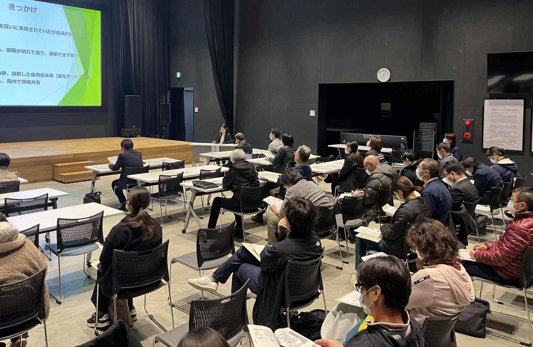11月26日(水)、釜石PITにて釜石薬剤師会・釜石市主催の「釜石市のつながり支援と多職種連携研修会」が開催されました。薬剤師、保健師、医師その他地域包括ケアに関わる多職種が参加し、上中島店の大釋里佳子薬局長が「薬局を起点とした社会的処方連携」と題し、釜石市薬剤師会と釜石市が協力して推進する連携事業「薬局起点連携パス」を活用した事例について発表しました。薬局薬剤師がリンクワーカー(患者さまの生活全体を見ながら、必要なサービスにつなげる役割)として機能することで、患者さまの健康課題だけでなく、生活背景や社会的要因にも目を向け、医療・介護・福祉・地域資源などの適切な支援先へつなぐ支援を行う重要性が示された発表でした。大釋「気になる患者さまがいれば自宅を訪問するようにしています。生活背景から薬局では見えない全体像を把握し、必要な支援につなぐことができます。」多職種連携の先進地域である釜石市では、日頃から顔の見える関係を築くことで、よりよい地域医療の構築を目指しています。